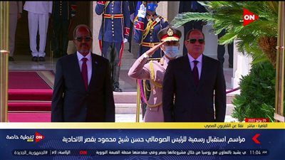 استقبل الرئيس عبد الفتاح السيسي، الرئيس الصومالى حسن شيخ محمود، وذلك في قصر الاتحادية، وأجريت مراسم الاستقبال الرسمية للضيف الكريم، حيث استعرض