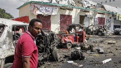 قال شاهد إن سيارة ملغومة يقودها انتحاري استهدفت موكبا حكوميا انفجرت عند تقاطع مزدحم بالعاصمة الصومالية اليوم السبت