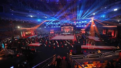 تشهد الصالة المغطاة رقم 1 باستاد القاهرة الدولي التجهيزات الأخيرة لاستضافة كأس العالم للجمباز الفنى رجال