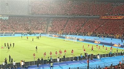 نزل لاعبي الفريق الأول لكرة القدم بالنادي الأهلي إلى أرضية استاد القاهرة الدولي لإجراء عمليات الاحماء استعداداً
