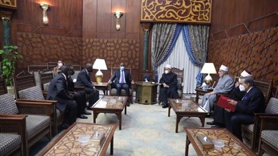 استقبل الدكتور أحمد الطيب، شيخ الأزهر الشريف، صباح اليوم الاثنين، وفدًا برئاسة مؤمن حسن بري، وزير الأوقاف والشؤون الدينية في جيبوتي.