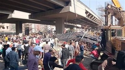 تجرى الإدارة العامة لمرور الجيزة عده تحويلات مرورية بموقع سقوط سقالة أحد الأعمدة بكوبري ترسا بطريق المريوطية