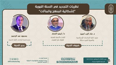 يعقد جناح الأزهر الشريف، غدًا الثلاثاء، ندوة تثقيفية بعنوان نظريات التجديد في السنة النبوية ، يحاضر في الند