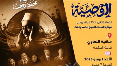 تعرض ساقية الصاوي 7 مساء الأحد 1 يونيو المقبل بقاعة الحكمة فيلم (الوصية)، الذي يروي قصة حياة الشيخ محمد رفعت، ويكشف