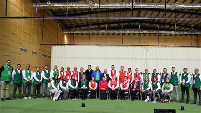 كرم اللواء حازم حسني رئيس الاتحاد المصري والإفريقي للرماية حكام بطولة العالم للرماية وعلى رأسهم السلوفينى روبرت فيرينشاك المندوب الفني للإتحاد