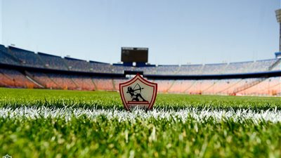 زين شعار نادي الزمالك جميع أنحاء ستاد القاهرة، استعدادًا لاستقبال مباراة الأبيض وتونجيت السنغالي فى السادسة.