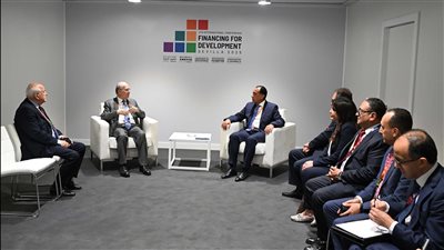 التقي الدكتور مصطفى مدبولي، رئيس الوزراء، اليوم؛ الدكتور محمد مصطفى، رئيس وزراء دولة فلسطين، بحضور رياض منصور