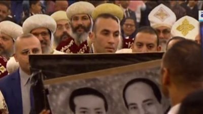 استقبل الأخوة الأقباط بكاتدرائية ميلاد المسيح الرئيس بالزغاريد وهتافات بـ نحبك يا ريس ، كما أهدى إحدى المواطنين الرئيس بورترية لصورتهز