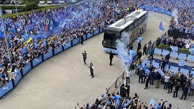 حظي نادي مانشستر سيتي بإستقبال جماهيري حافل بمحيط ملعب "الاتحاد"، قبل مواجهة أستون فيلا، في الخامسة مساء
