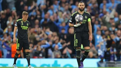 كريم بنزيما ..فشل النجم الفرنسي كريم بنزيما لاعب فريق ريال مدريد الإسباني خلال مواجهة فريقه أمام مانشستر سيتي، في ن