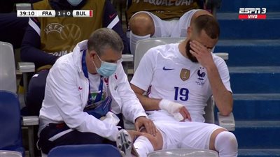 أصيب كريم بنزيما نجم منتخب فرنسا ونادي ريال مدريد الإسباني، خلال مشاركته في مباراة فرنسا وبلغاريا المقامة حالياً، ضمن