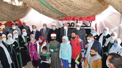 وسط ممر شرفى وزفة انطلق100 طفل وطفلة من حفظة القرآن الكريم في صفوف مرتدين التيجان وأبهى الثياب الالدد