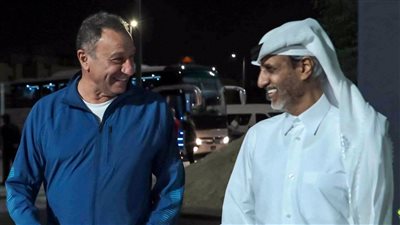 حرص الكابتن محمود الخطيب، رئيس النادي الأهلي، رئيس بعثة الفريق الأول لكرة القدم في "الدوحة"، على تقديم التهنئة إلى الشيخ