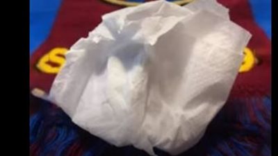 نشر شخص مجهول ، إعلان يعرض من خلاله بيع المنديل الخاص بـ ليونيل ميسي نجم فريق برشلونة السابق وباريس سان جيرمان الحالي