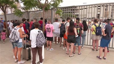 توافد جماهير نادى برشلونة على ملعب "كامب نو" من أجل وداع أسطورتهم الأرجنتينى ليونيل ميسى وذلك قبل انطلاق مؤتمر الوداع