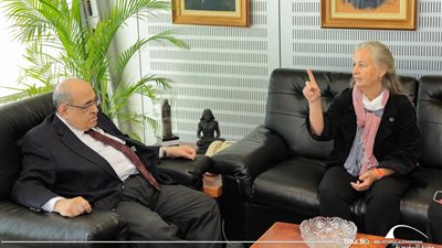 استقبل الدكتور مصطفى الفقي؛ مدير مكتبة الإسكندرية، صباح اليوم، زابينه ارلنفاين؛ المدير الجديد لمعهد جوته