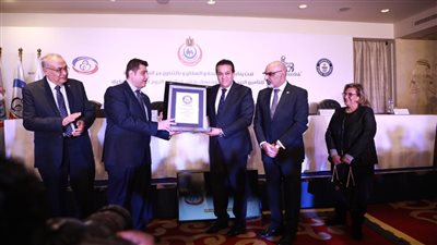 تسلم الدكتور خالد عبدالغفار وزير الصحة والسكان، شهادة من موسوعة «جينيس ريكورد» للأرقام القياسية بتسجيل أكبر تجمع لتوعية