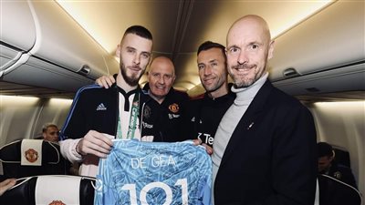 حرص لاعبي مانشستر يونايتد الإنجليزي، على الاحتفال بديفيد دي خيا حارس مان ستي بعدما أصبح أكثر حارس في تاري