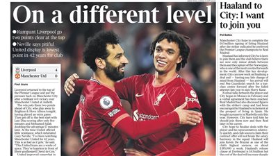 تصدر محمد صلاح، نجم منتخب مصر ونادي ليفربول، أغلفة وعناوين الصحافة الإنجليزية، وذلك بعدما سجل "هدفين" في فوز