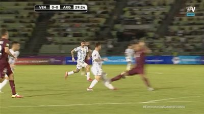 تعرض ليونيل ميسي نجم منتخب الأرجنتين لتدخل عنيف من جانب لويس مارتينيز مدافع منتخب فنزويلا، في المباراة التي تجمع