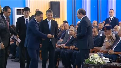 قدم رئيس مجلس إدارة مجموعة هاير العالمية تشاو يانج، هدية تذكارية للرئيس عبدالفتاح السيسي، خلال افتتاح مجمع الشركة العملاق