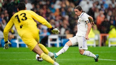 سجل لوكا مودرتش الهدف الأول لريال مدريد في مرمي إشبيلية بأسيست فينسيوس جونيور،