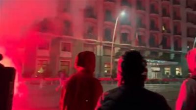 هاجمت جماهير نابولي الإيطالي، مقر إقامة ريال مدريد في الساعات الأولي من صباح اليوم الثلاثاء، قبل القمة المرتقبة التي ستجمع