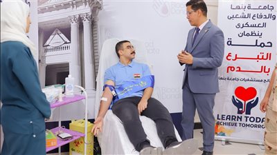 تفقد الدكتور ناصر الجيزاوى رئيس جامعة بنها فعاليات حملة التبرع بالدم التى أطلقها قطاع خدمة المجتمع وتنمية البيئة بالتعاون مع قوات الدفاع الشعبي والعسكري.