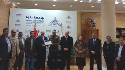 كرم الدكتور جمال سوسه رئيس جامعة بنها العقيد سامي قشطه مدير التربية العسكرية بالجامعة تقديرا لمجهوداته في دعم المبادرات