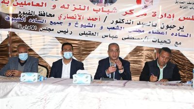 عقد الدكتور أحمد الأنصاري محافظ الفيوم، لقاءً جماهيرياً مع أهالي قرى مركز يوسف الصديق، بمركز شباب قرية النزلة .