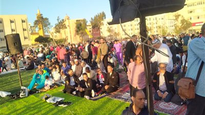 توافد أبناء محافظة بورسعيد لأداء صلاة العيد فى ساحة المعمورة بـ نطاق حي الشرق، والتي تواجد بها الآلاف من المواطنين، وهزت التكبيرات بها أرجاء الحي