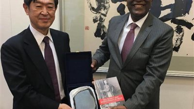 عقد السفير محمد أبو بكر، سفير مصر في طوكيو، لقاءً مع البروفيسور Shinichi Kitaoka، رئيس وكالة اليابان للتعاون الدولي JICA،