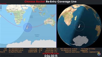 أعلن مركز الفلك الدولى، عن قيامه بعرض متابعة مباشرة، عبر البث الحي لموقع حطام الصاروخ الصينى، وذلك عبر حساباته الرسمية،.