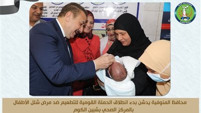 دشن صباح اليوم اللواء إبراهيم أحمد أبو ليمون محافظ المنوفية بدء فاعليات الحملة القومية للتطعيم ضد مرض شلل الأطفال