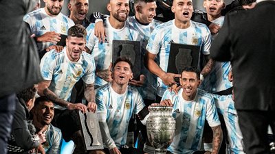 احتفل الأسطورة الأرجنتينية، ليونيل ميسى، لاعب باريس سان جيرمان الفرنسى، اليوم الجمعة، بكأس كوبا أمريكا مع جمهور الأرجنتين، وذلك