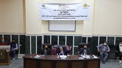 عقد اللواء أسامة القاضي، محافظ المنيا، يرافقه نائبه الدكتور محمد أبوزيد، جلسة المشاركة المجتمعية، بمركز ملوى بقاعة