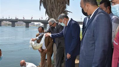 شهد اللواء أسامة القاضي، محافظ المنيا، يرافقه نائبه الدكتور محمد أبوزيد، إلقاء مليون زريعة سمك في نهر النيل بمدينة المنيا