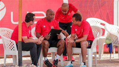 عقد الجنوب إفريقي بيتسو موسيماني، المدير الفني للفريق الأول لكرة القدم بالنادي، جلسة مع جهازه المعاون، على هامش مران