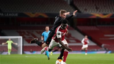 سجل ساكا الهدف الثالث لفريق أرسنال المحترف ضمن صفوفه محمد الننى، لاعب منتخب مصر، فى شباك سلافيا براج التشكي