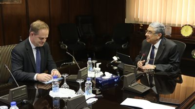 إستقبل الدكتور محمد شاكر وزير الكهرباء والطاقة المتجددة جاريث بايلى سفير بريطانيا بالقاهرة ومارتن كيف مدير مكتب