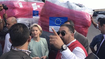 تفقدت أورسولا فون دير لاين رئيسة المفوضية الأوروبية، المساعدات الدولية لغزة التي تصل تباعا لمطار العريش الدولي