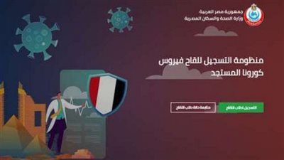 كشفت وزارة الصحة والسكان، عن موقع تسجيل اللقاح من خلال رابط egcovac.mohp.gov.eg والتي لا تستغرق عملية التقديم
