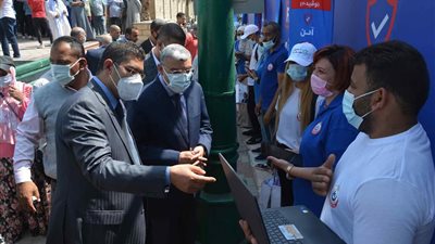 وسط إقبال كبير من المواطنين تفقد اللواء أشرف عطية محافظ أسوان جهود مبادرة "معاً نطمئن .. سجل الآن" أثناء تقديم