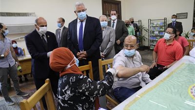 تابع عبد الحميد الهجان محافظ القليوبية، اليوم الخميس، يرافقه الدكتور خالد عبد الغني وكيل وزارة الصحة، أعمال تطعيم موظفي عدد