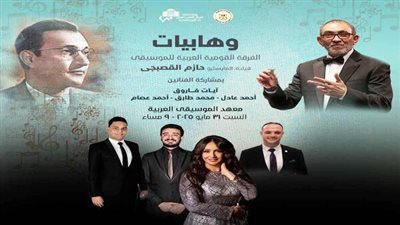 يقام حفل للفرقة القومية العربية للموسيقى بقيادة المايسترو حازم القصبجى، ضمن سلسلة وهابيات، وذلك فى التاسعة