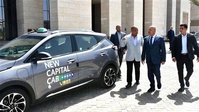 تفقد الفريق مهندس كامل الوزير وزير النقل عدد 10 سيارات كهربائية ( تاكسي ) مقرر تشغيلها تجريبيا داخل العاصمة الإدارية ا
