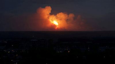 أظهرت لقطات مصورة، من الأراضي الأوكراني، مساء اليوم السبت، إنفجار مستودعات أسلحة تابعة للجيش الأوكراني.
