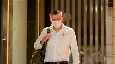 تواجد الفرنسي باتريس كارتيرون المدير الفني للفريق الأول لكرة القدم بنادي الزمالك في أرض ملعب ستاد القاهرة قبل مباراة.
