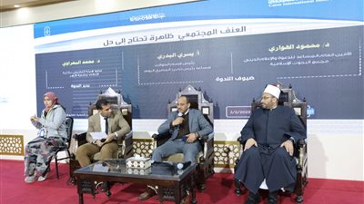نظم جناح الأزهر الشريف بمعرض القاهرة الدولي للكتاب في نسخته 54، اليوم الخميس، ندوة تثقيفية بعنوان ، العنف
