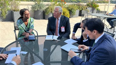 بحث السيد القصير وزير الزراعة واستصلاح الأراضي، و سيلفيا لوبينز إكرا نائب مدير مركز تنسيق قمة الغذاء العالمية بالامم المتحدة و ديفيد نابرو